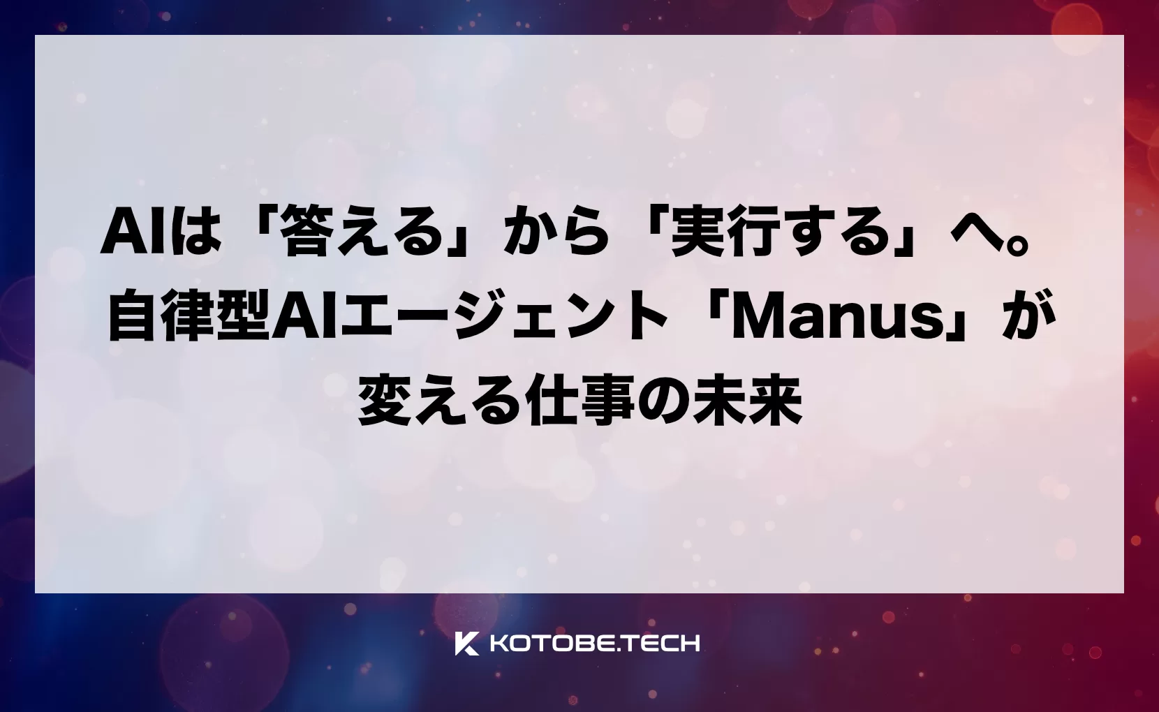 KOTOBE.TECHはAI初心者から中級者まで役立つAI活用術・最新トレンド・実践ノウハウをわかりやすくお届けします!